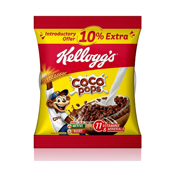 Kellogg’s Coco Pops is a chocolate-flavored toasted rice cereal made from puffed rice coated with cocoa. Fortified with iron and six essential vitamins, and containing 100% beet sugar, it is free from preservatives and artificial colorants in many variants. Rich in fiber and made from quality ingredients, including rice, cocoa powder, dark chocolate, and barley malt extract, Coco Pops transform milk into a chocolatey breakfast experience. Ideal for children and adults, it’s perfect for a fun, energizing breakfast or a quick, tasty snack.
