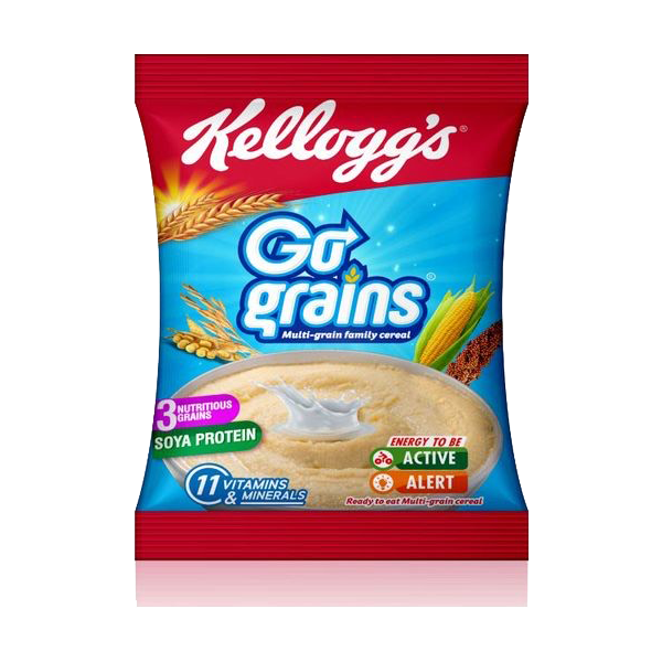 Kellogg’s Go Grains Multigrain Cereal is a multigrain breakfast option designed for the whole family. Made with maize, guinea corn, rice, and soya protein, it is fortified with essential vitamins and minerals and provides a good source of fiber. Available in flavors such as banana, this cereal is ideal for breakfast with milk or yogurt, or as a wholesome snack anytime. Quick to prepare and packed with nutrition, it is a convenient way to start the day with energy and taste.